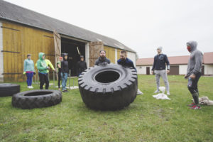 4. Siła zarówno górnych, jak i dolnych partii ciała- pokonanie wielu przeszkód wymaga niesamowitej siły – dźwiganie opon, wspinanie, wciąganie na linie itp.